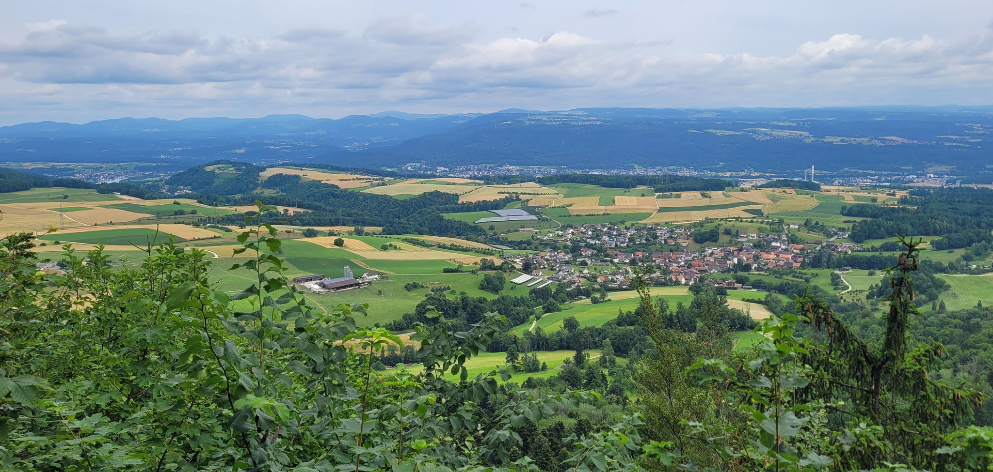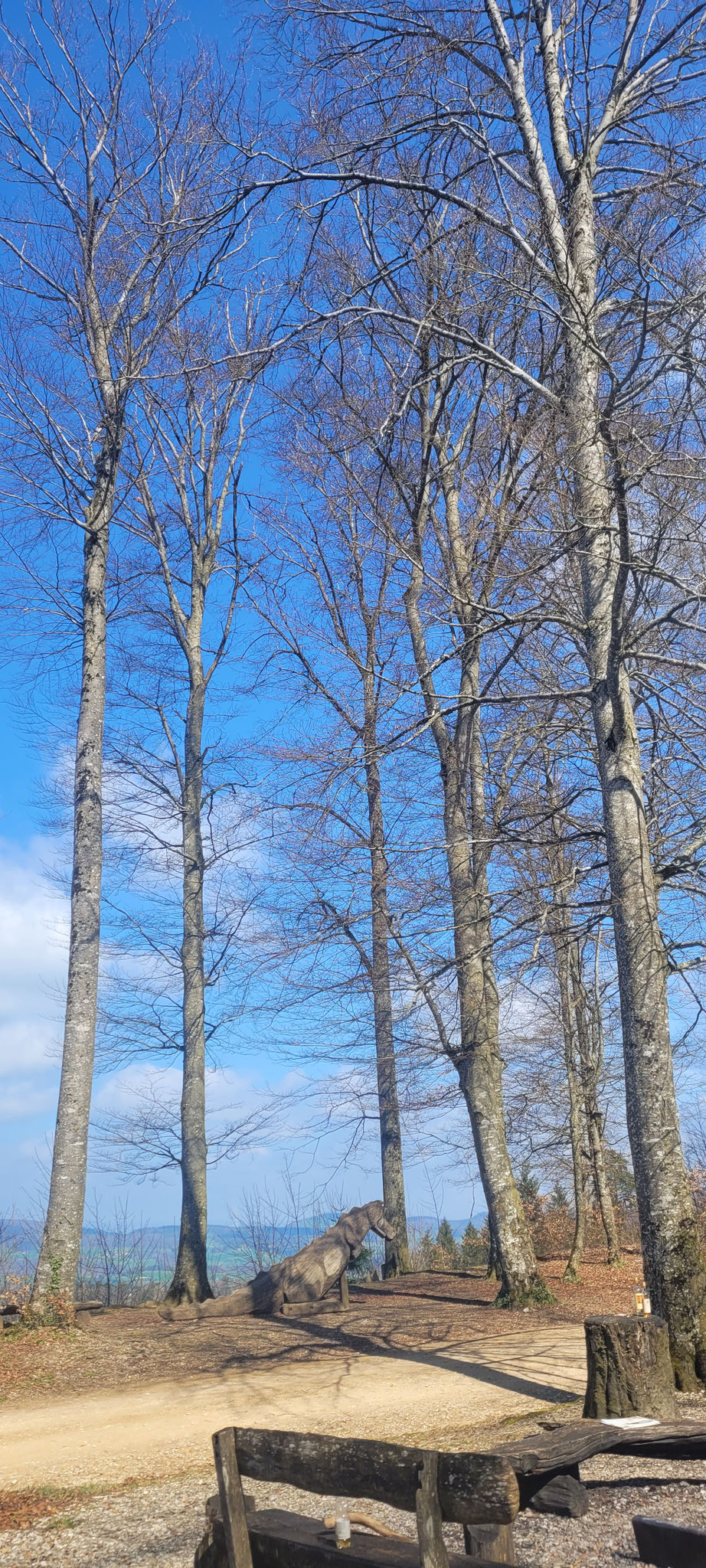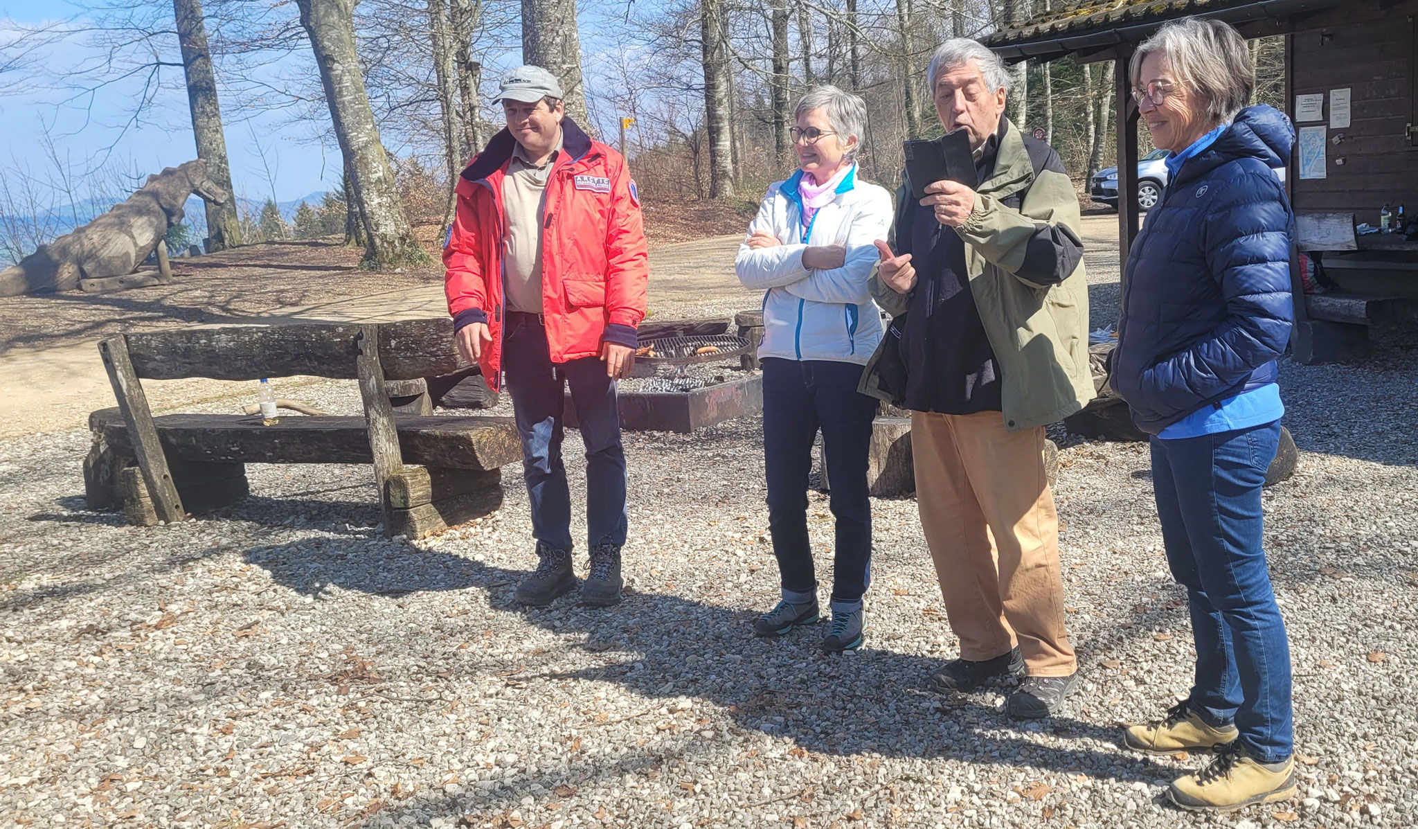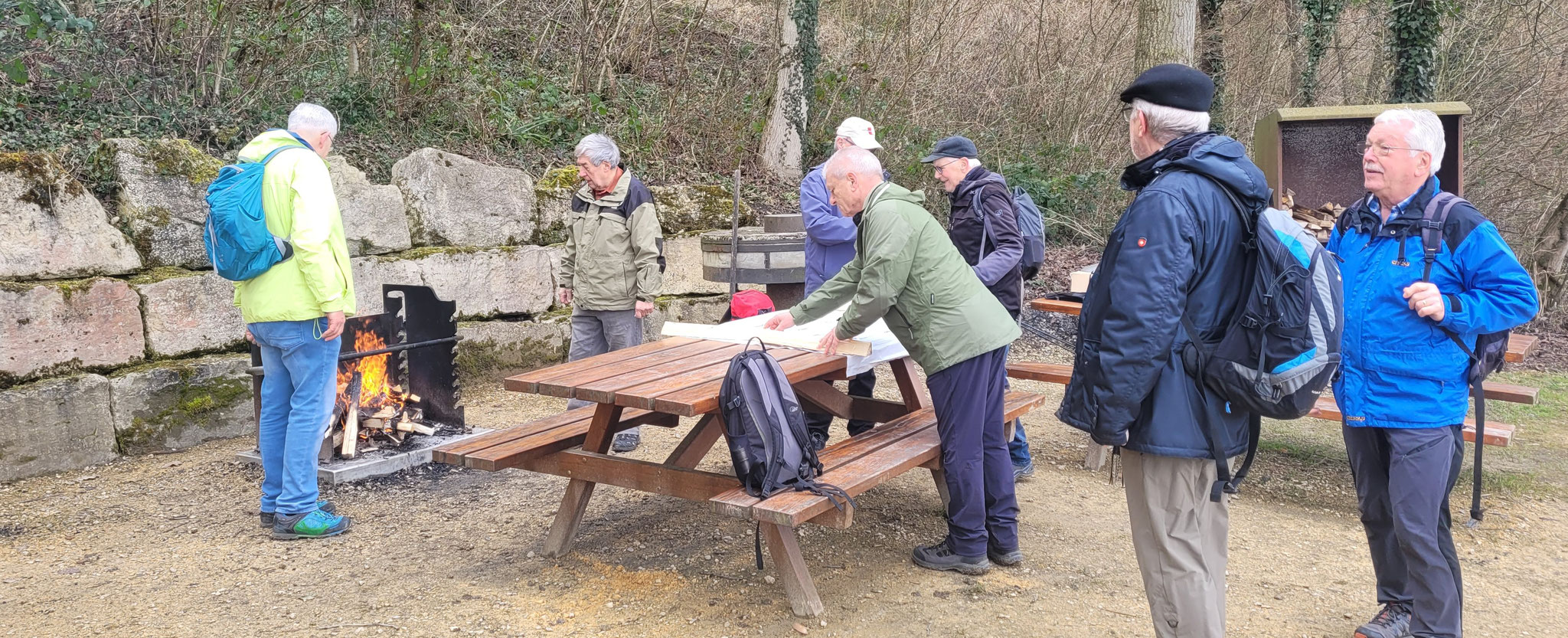 Mit dem Postauto fuhr die Wandergruppe um 09.21 Uhr von Frick nach Asp, wo wir fast die ganze Dorfstrasse von Asp (zur politischen Gemeinde Densbüren gehörend) durchliefen. Der Anstieg bis zur Stockmatt führte auch an der Skiliftanlage von Asp mit den beiden Skihütten vorbei. Bei der Stockmatt nahm die gut gelaunte Wandertruppe den Anstieg Richtung Strihe, dem mit 866,7 m höchsten Berg, der ganzheitlich im Kanton Aargau liegt, unter die Füsse. Oben angelangt, durfte bei gutem Weitblick ein «Gipfeltrunk» nicht fehlen. Über den Strihengrad ging es wortwörtlich über Stock und Stein an einen weiteren Aussichtspunkt im Jurapark vorbei zur Waldhütte Wölflinswil. Dort loderte schon das von Hans Jörg und seinen Helfern vorbereitete Feuer, um unsere mitgebrachten Grilladen zum Brutzeln zu bringen. Die 12 Teilnehmenden genossen sichtlich die frühlingshafte Atmosphäre im Wald und gewisse vergassen auch nicht, erste Marketingsmassnahmen zu platzieren für unsere Konzerte vom 14./15.11.2025!