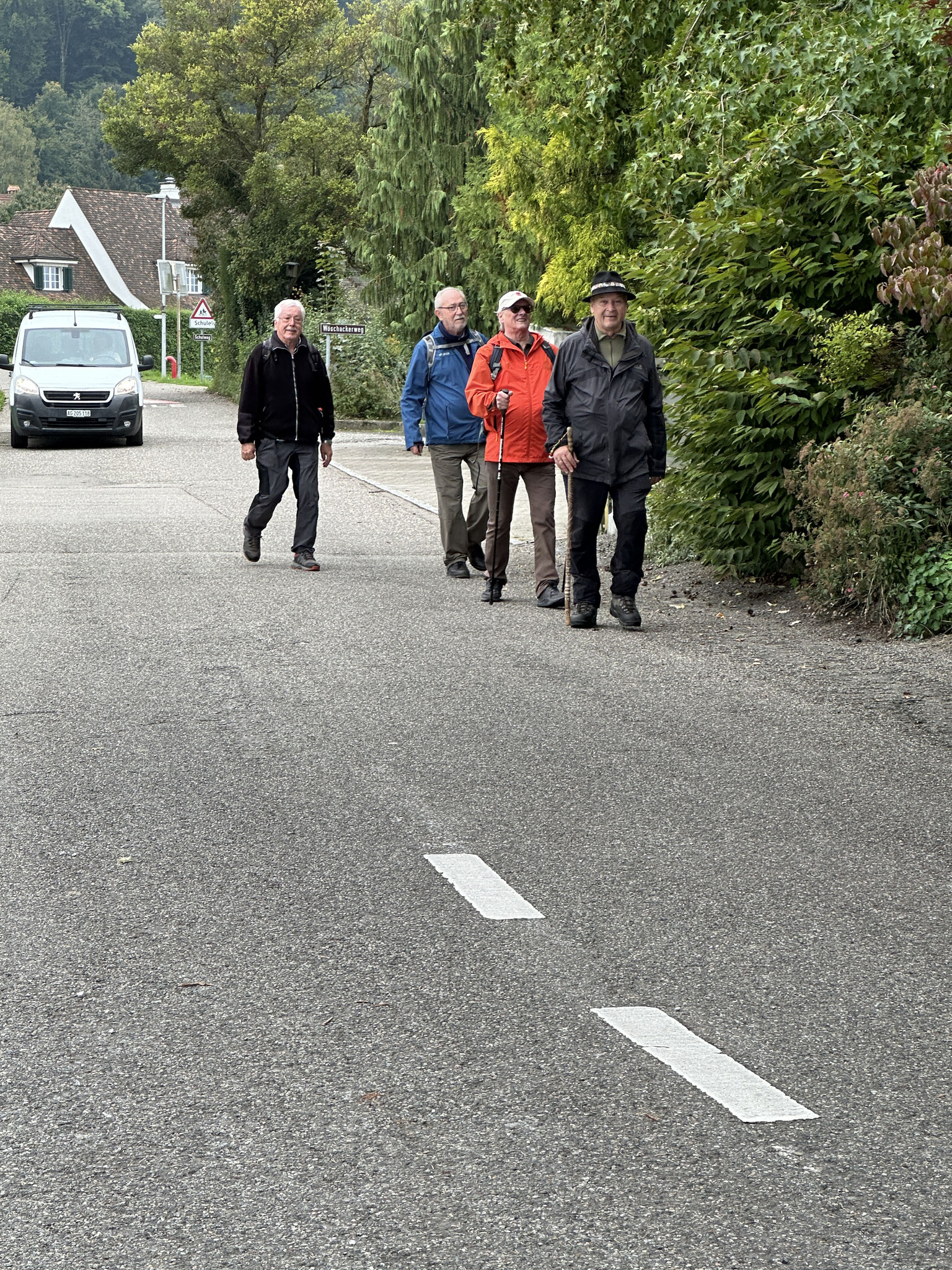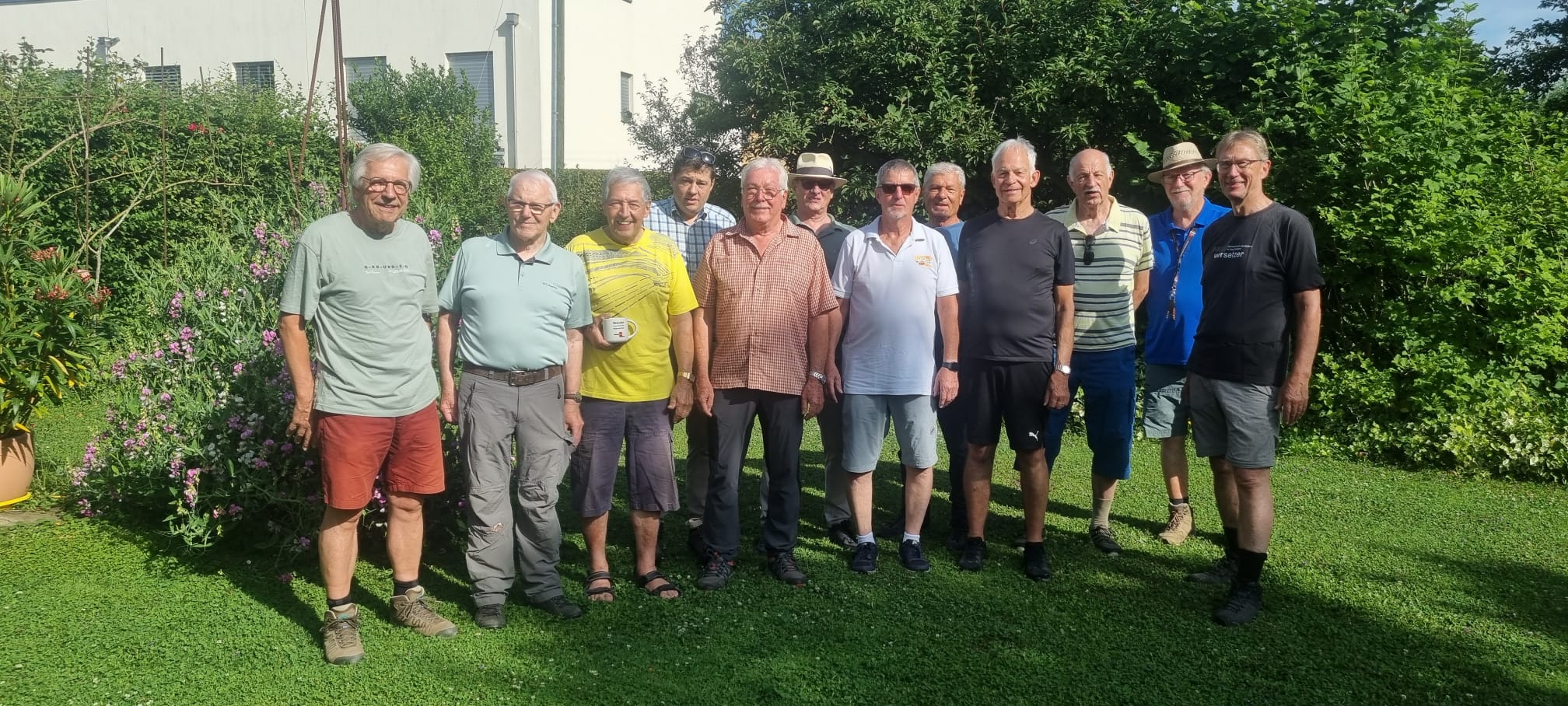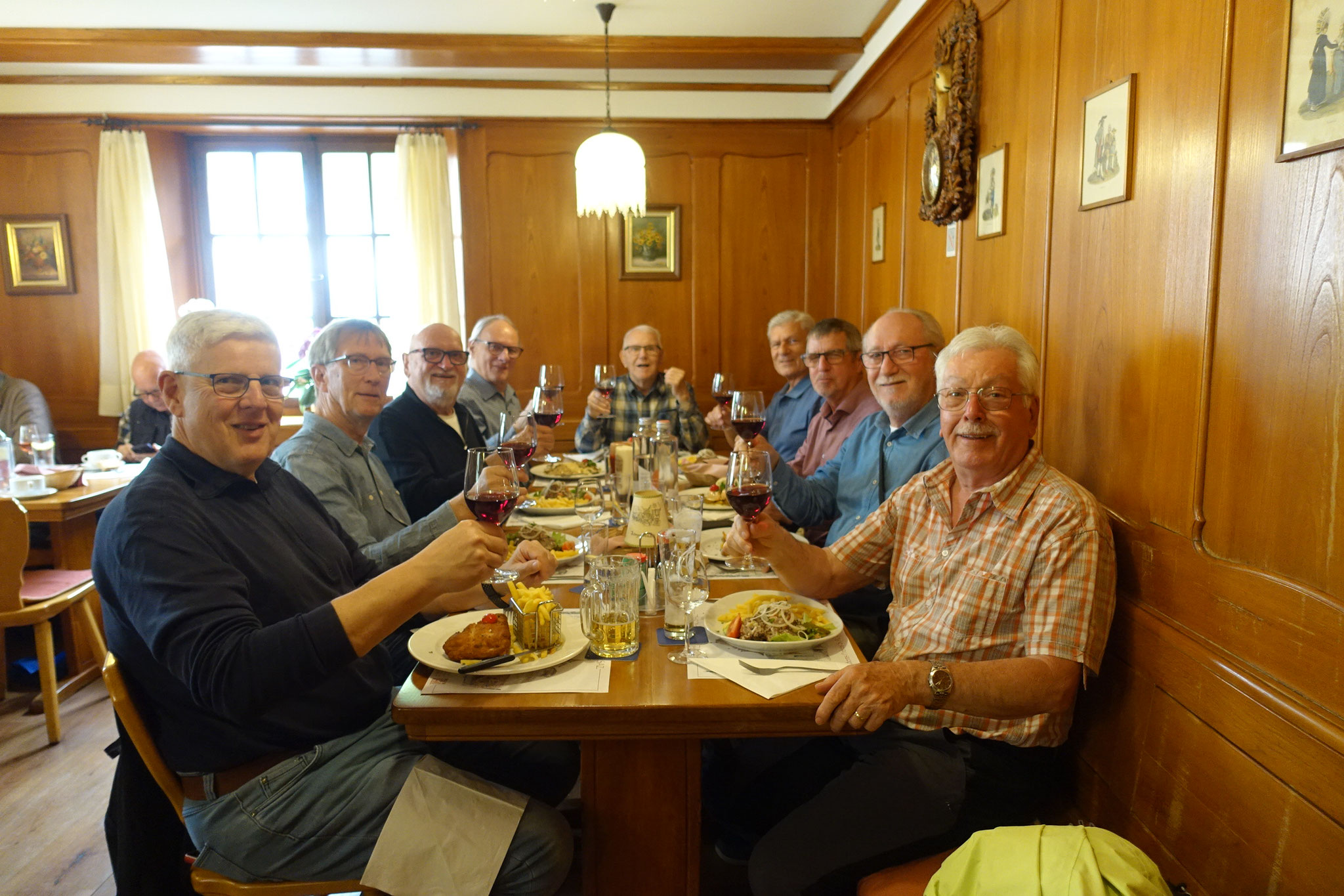Um 12:45 Uhr versammelten sich neun Personen zur Wanderung nach Bözen beim Schwimmbad Parkplatz in Frick. Die Route führte über die Stieracker-strasse und der Sissle entlang nach Hornussen. Vier weitere Fussgänger warteten beim Feldschlössli auf uns. Zusammen mit ihnen und den zwei kleinen Nachwuchssängern im Kinderwagen erreichten wir nach einer halben Stunde das Ziel in Bözen. Im Restaurant Bären gesellten sich nochmals zehn Personen, die mit dem Postauto angereist sind, zu uns. Ein feiner Weisswein als Apéro durfte natürlich nicht fehlen. Die hervorragend zubereiteten Würste mit Beilagen genossen wir sichtlich. Eine Gesangseinlage unter der Leitung von Walti Riner fehlte natürlich nicht. Ein gemütlicher Nachmittag mit vielen guten Gesprächen beendeten wir gemeinsam um ca.16:30 Uhr und kehrten mit dem Postauto nach Frick zurück.