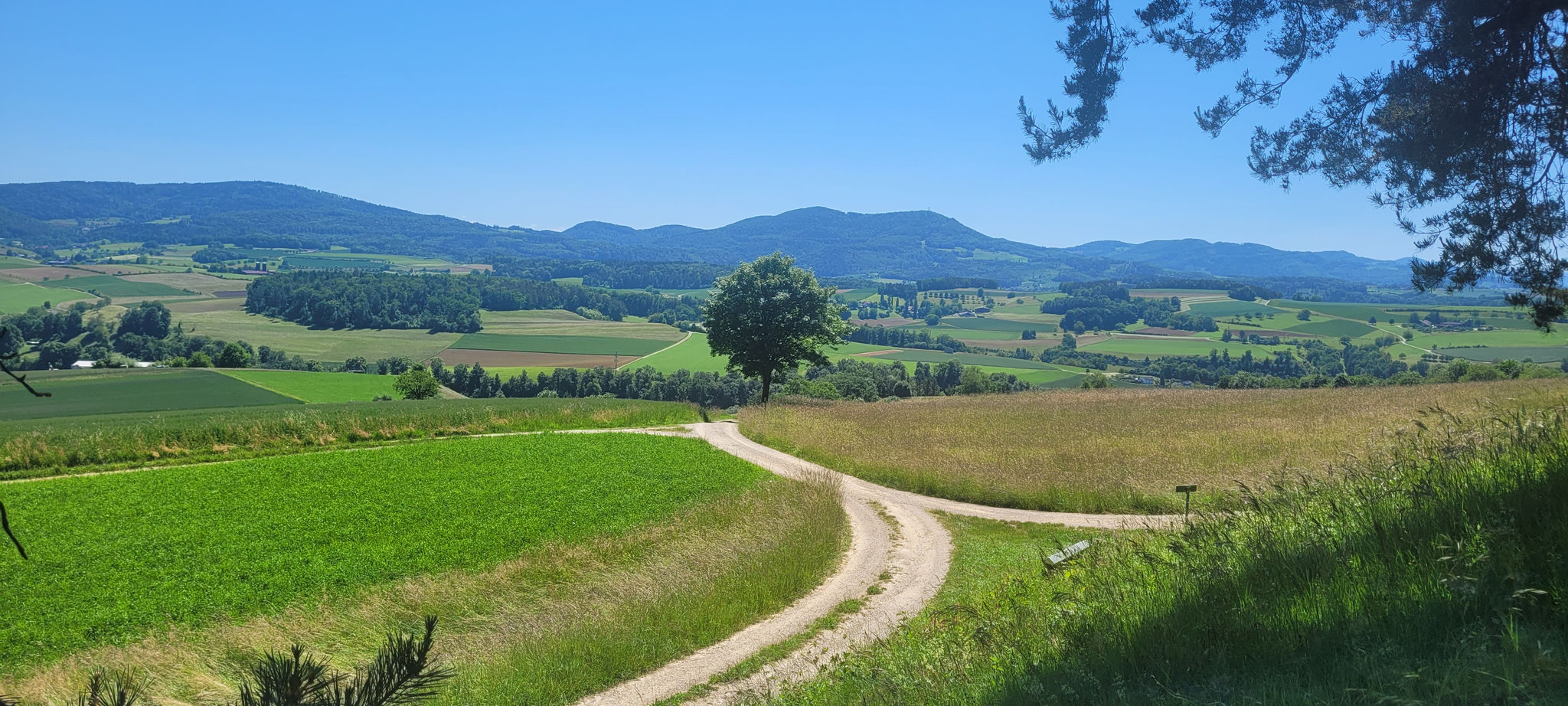 Nach «Kafi-avec mit Crèmeschnitte» nahmen die Wanderer den Abstieg auf dem Fricktaler Höhenweg unter der erbarmungslos strahlenden Junisonne in Angriff.