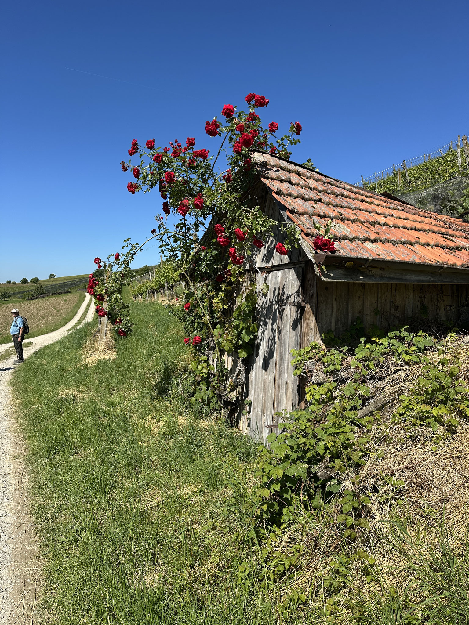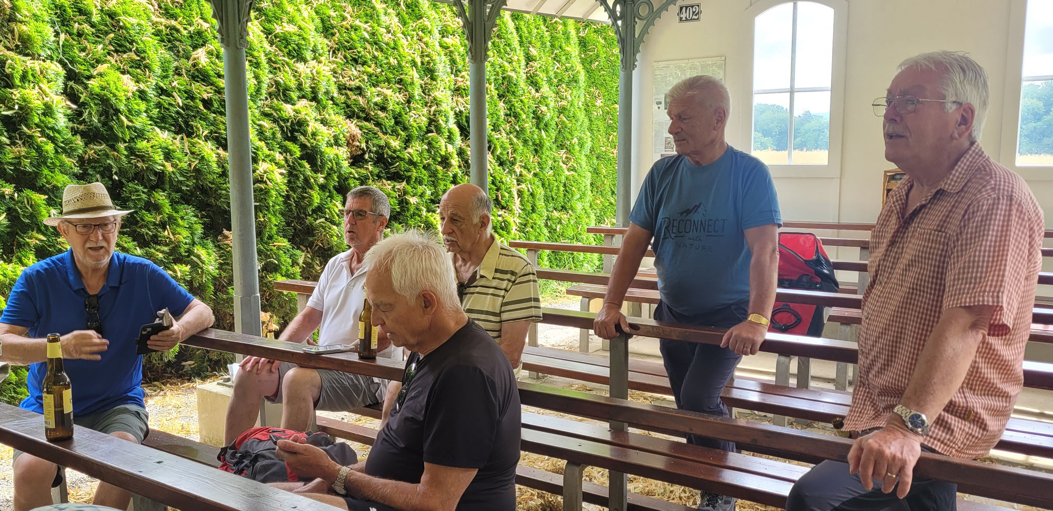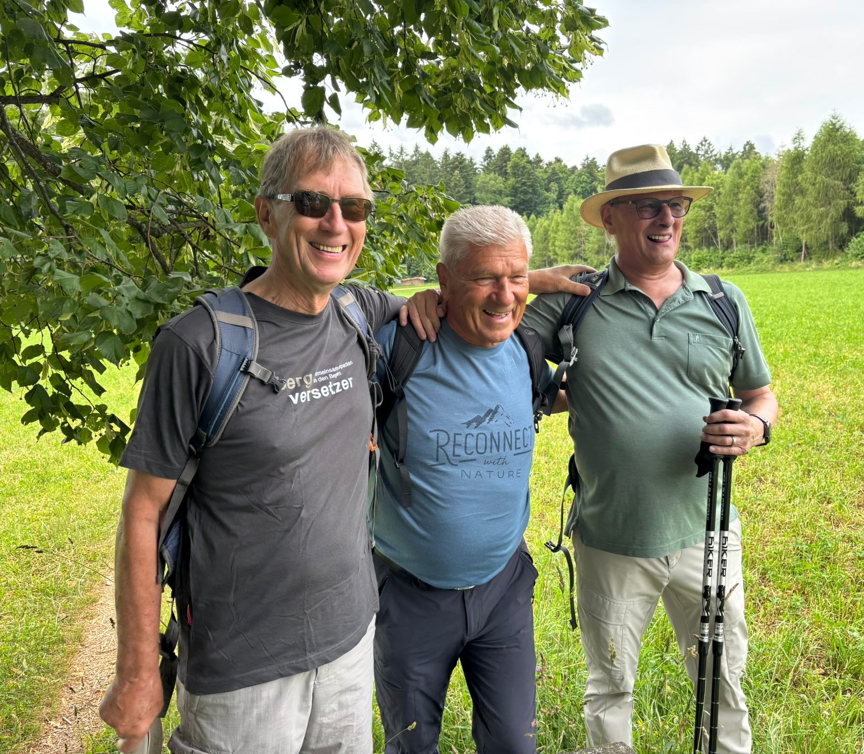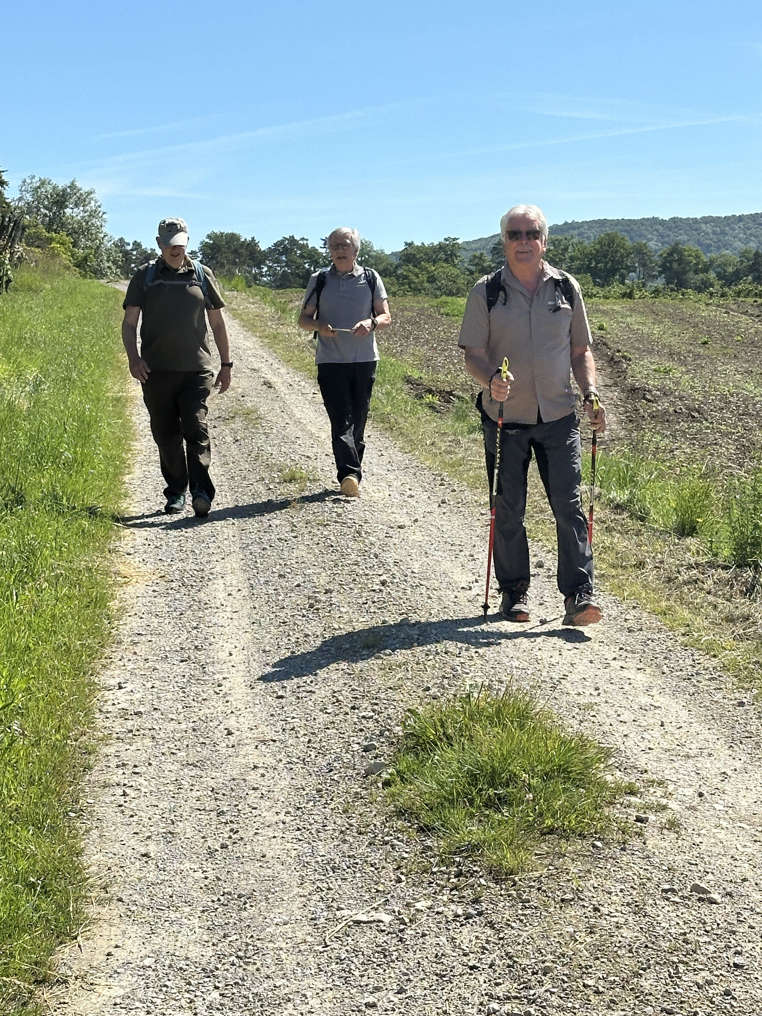 Nach einer langen Regenperiode meinten es unsere vier Peter gut mit ihren Kollegen und kontaktierten ihren Chef im Himmel. Siehe da, es fruchtete. Bei herrlichem Wanderwetter versammelten sich 7 Männerchörler beim Bahnhof SBB in Stein zum Fussmarsch nach Mumpf. Vorbei an der «Grasskipiste» oberhalb des Dorfes, welche immer noch bei Clubanlässen benützt wird.