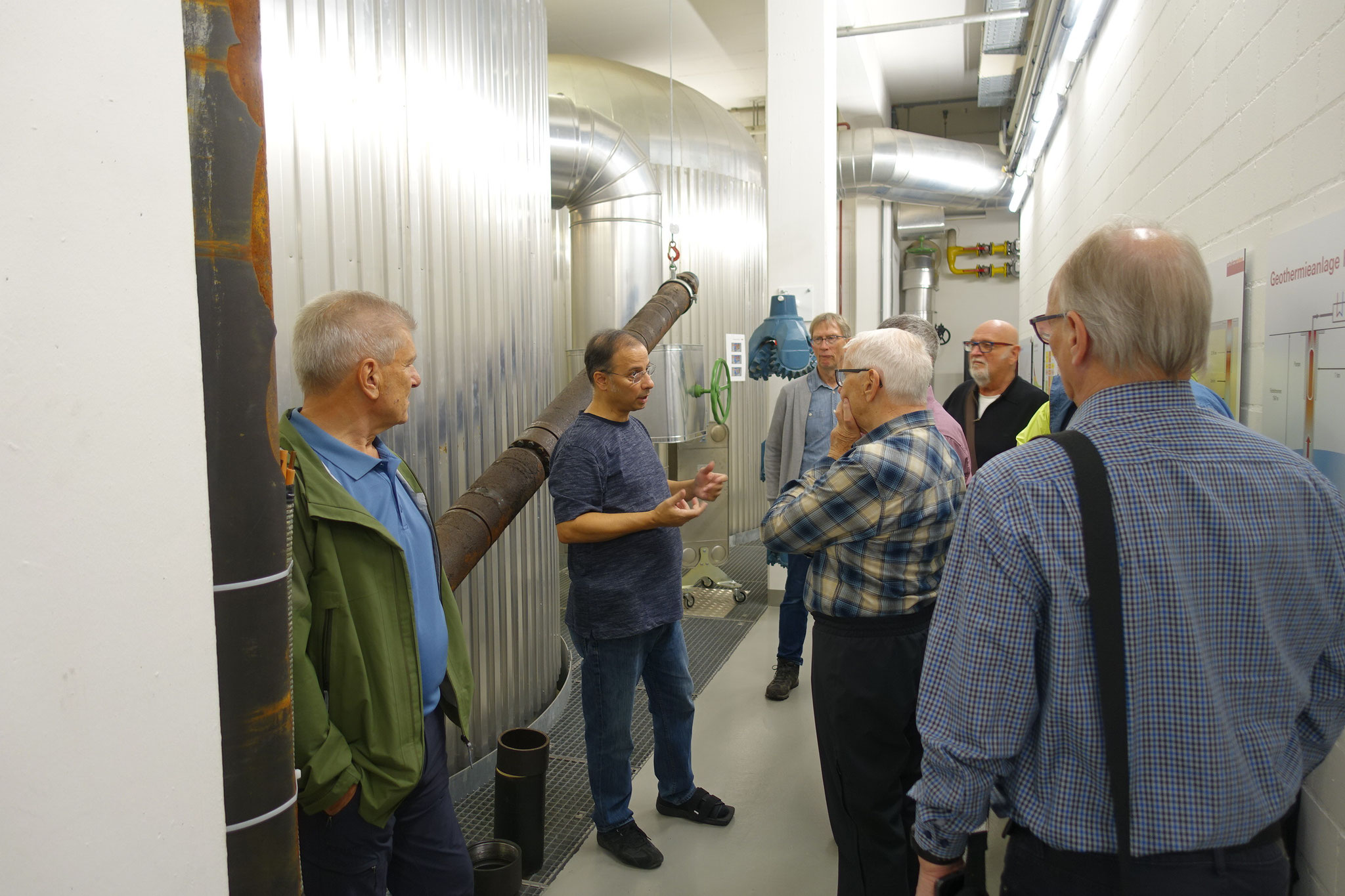 Mit dem OeV fuhren wir neun Wanderer von Frick über Basel nach Riehen BS. Nach 15 Minuten Fussmarsch durch das schöne Riehen erreichten wir das erste Ziel. Um 10.15 Uhr waren wir zu einer Führung in der Geothermie-Zentrale Riehen angemeldet. Der Betriebsleiter informierte uns über die Geschichte und sehr interessante technische Daten dieser Anlage. Wir genossen diese Führung in der schweizweit ersten Anlage. Angeschlossen sind heute über 10000 Einwohner. Das 67°C heisse Wasser wird aus 1500 Meter Tiefe hochgepumpt und auf bis 90° weitererwärmt. Eine zweite gleiche Anlage ist bereits geplant und wird auch in das Fernwärmenetz Riehen einspeisen. Im nahegelegenen heimeligen Restaurant Sängerstübli, war schon für uns hungrige Sänger gedeckt. Es wurde Siedfleischsalat mit Pommes und andere Spezialitäten probiert. Sehr fein war alles. Wir genossen den einheimischen Wein bei schönem Gesang. Bajazzo und Weinland passten genau. Anschliessend fuhren wir mit dem Bus 32 nach St. Chrischone-Berg, Gemeinde Bettingen BS. Von einer Theologie- und Pädagogik-Studentin wurden wir sehr herzlich zu einer Führung empfangen. Hier am tsc, dem theologischen Seminar St. Chrischona, kann man ein Bachelor-Studium in Theologie und Pädagogik oder Theologie und Musik absolvieren. Sie informierte uns über die spannende Geschichte von St. Chrischona und über die Gegenwart. In der schönen gotischen Kirche durften wir ihr noch zwei Kirchen-Lieder singen. Anschliessend zeigte uns die begeisterte Studentin noch die sehr gepflegten Gebäude „auf dem Berg“. Dies war u.a. das schöne Studiengebäude, die grosse Konzerthalle und die wertvolle Bibliothek. Auch der ca. 500 Meter entfernte Wohnpark und das Pflegeheim konnten wir durchstreifen. Nachher fuhren wir mit dem Bus 32 talwärts nach Bettingen Dorf. Die Wanderer stiegen aus. Vor der einstündigen Wanderung genehmigten wir uns noch ein kühles Bier im Rest. Baslerhof. Die Route führte dann hinunter durch den einmalig schönen und grossen Wenkenhof-Park nach Riehen. Mit vielen neuen Informationen und nach interessanten Begegnungen fuhren wir zurück ins heimische Fricktal.